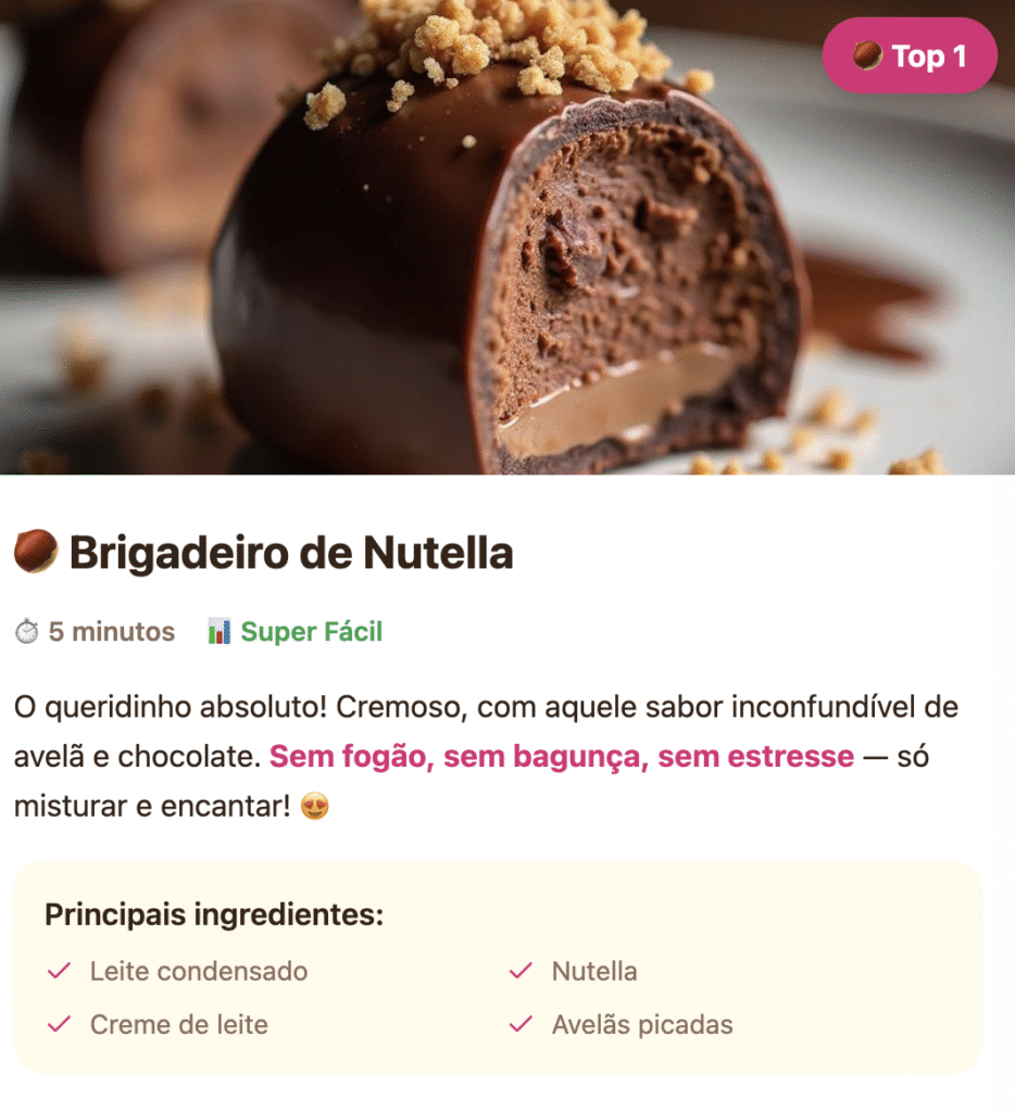 Com certeza! Muitas pessoas já estão lucrando com essas receitas. O guia inclui um bônus especial “Como Vender Brigadeiros Sem Fogo e Lucrar Rápido” com dicas de precificação, embalagem e divulgação para te ajudar a começar seu negócio.